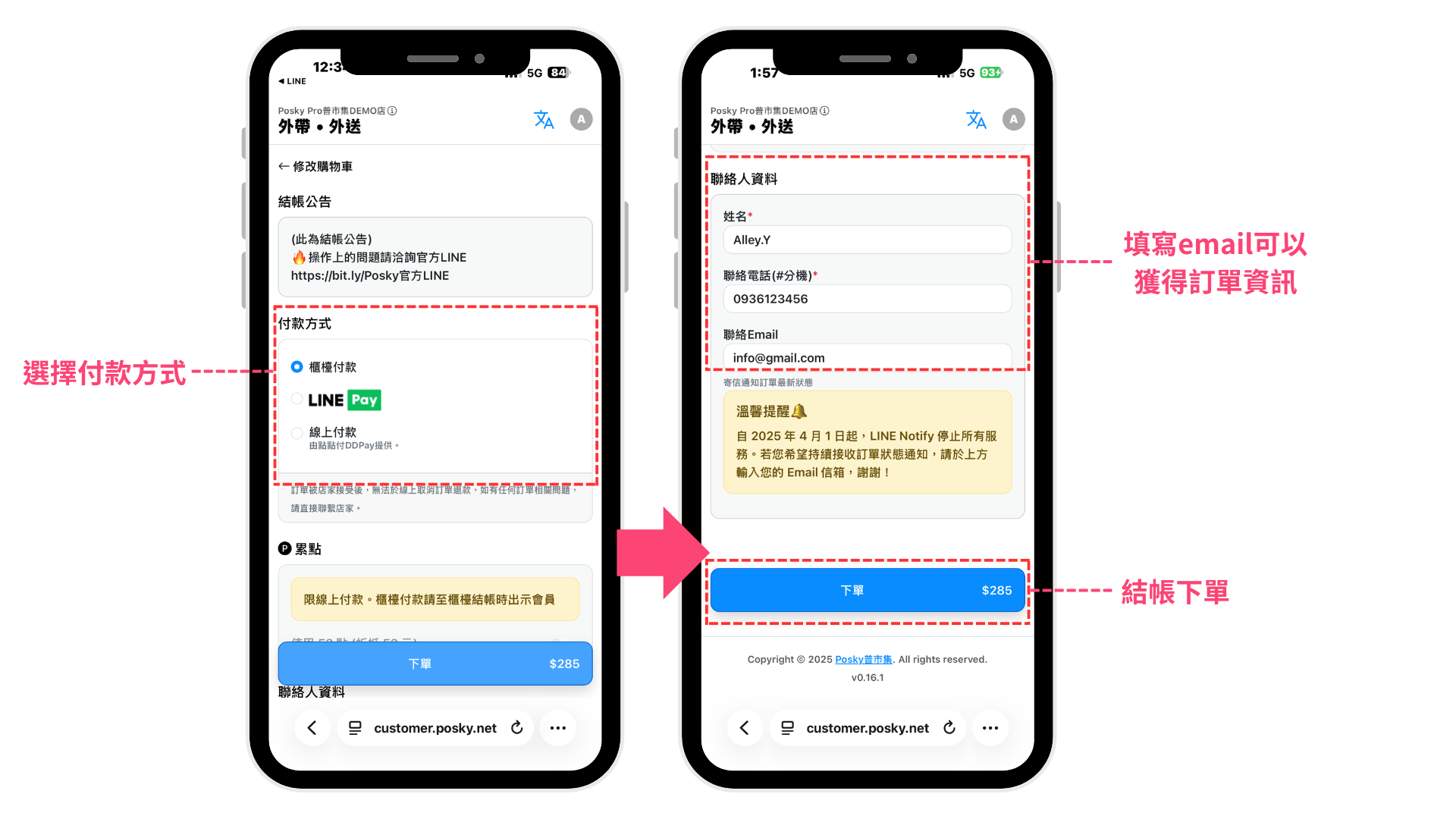 選擇付款方式與輸入取餐人資料(外帶才需要)